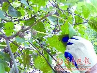 塔山东路附近密集种了很多无花果树和槐树,周围很阴凉。殷先生称,约一个月前,居民就发现这些果树结的果子发霉变黑,原以为只是个别情况,后来发现附近的无花果树都陆续得病。他告诉记者,这些无花果树都是附近居民种的,多数果树都种了20多年了,“我们这是头一回遇到这种情况。”