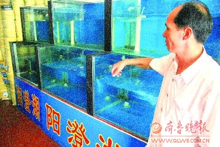 该水产店老板介绍,去年二两半的微山湖大闸蟹每斤在30元左右,而阳澄湖大闸蟹每斤高