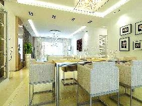 简洁的表现形式可以满足人们对空间环境的感性和理性的需求,舍弃不必要的装饰元素,追求时尚和现代的简洁造型。直线灯槽的吊顶,一方面可以增加客厅灯光效果,另一方面也使整个空间更加有层次感,茶色镜片处理既宽敞明亮又不失稳重大方。素色的经典花纹壁纸配合白色的沙发和灰色的地毯,就让空间的焦点凝聚到落座在沙发上的主人,整套方案用最直白的装饰语言很好的体现了我们所需要营造的空间氛围。