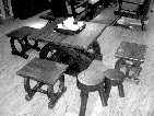 轮有语 木有情 参天的古木有着数不清的年轮,旧马车、老渔船,晚风扶柳,短笛清扬,村头的辘轳吱扭作响。写意森林的这组休闲桌椅恰是这种情怀的写照。老榆木透着一股淡泊明志的风度,曲折奔放的木纹引大自然气息入室。休闲方桌桌腿取车轮造型,仿佛一架马车,行往远处。休闲椅饰以钉扣,一如古时车船的连接工艺,沧桑感在细节中流露。休闲圆凳信手而来,圈圈年轮和不规则的边缘带有一种原野的美感。