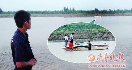 大约6点40分左右,前来搜救的快艇赶到现场。民警用一根带有小铁耙的竹竿,乘着快艇缓慢沿事发水面向下游搜寻。