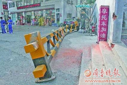 “当时,这限高杆直接把我们加油站的西侧入口堵住了。”距离上桥口南侧十来米的一家大型加油站的一名工作人员告诉记者。而加油站西墙角处,一根七八米长、已经弯曲变形的限高杆让人触目惊心,中间限高2.9米的警示牌清晰可见。