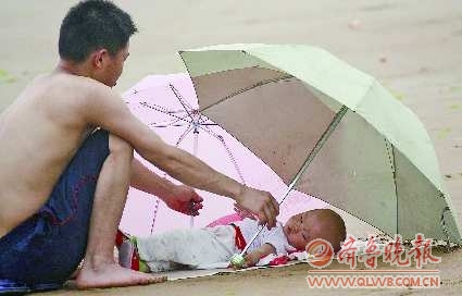 时间:2011年7月22日地点:青岛器材:佳能450D自述:给孩子遮阳还得防小手乱舞,当爹的就一直扶着伞守候着。点评:安乐窝。(拍客奖50元)
