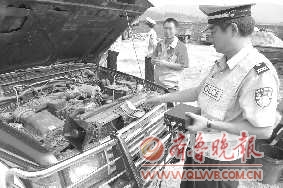 31日下午,一辆私自安装警报器,并在超车时使用的车辆被交警五大队民警查获。民警扣留该车,并将警报装置拆除。本报记者 吕修全 通讯员 孙珊珊 摄