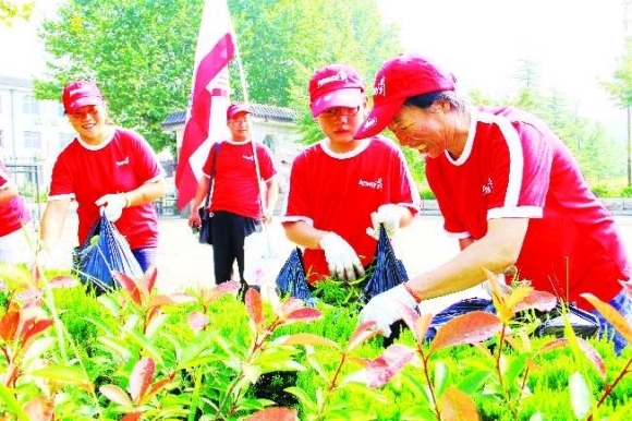 8月31日上午,在华东革命烈士陵园,60多名志愿者在捡拾垃圾、拔除杂草等。此次是“安利创城志愿者联盟活动”的第二站,今后,志愿者还将到临沂人民广场、阳光沙滩等地开展义务活动,为创城贡献一份力量。 记者 徐升 摄