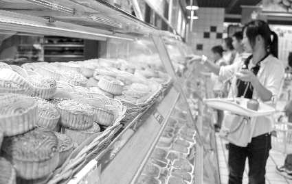 近日,在人民广场附近一超市的月饼专柜,许多市民在购买散装月饼。