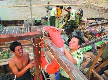 9月1日是黄海、渤海海域开渔的日子。为确保顺利开渔,滨州边防支队各边防派出所民警深入辖区码头、渔船,全力维护码头生产秩序,广泛宣传安全生产知识和法律法规常识。图为8月31日海防派出所民警在辖区内渔船上检查安全设施。通讯员 王雷 于景润 摄影报道