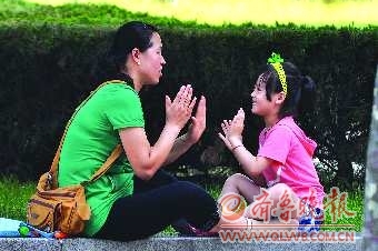 树荫下相对而坐唱起拍手歌,忘掉炎热,其乐融融,泉城广场上一幅母子同乐图。 拍客 孔德政
