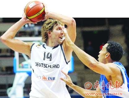 当地时间8月31日,德国队球员诺维茨基在比赛中。当日,在立陶宛希奥利艾举行的2011欧洲篮球锦标赛B组比赛中,德国队以91:64战胜以色列队。 新华社发