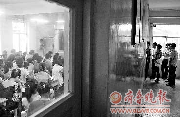 9月1日,实验小学新生入学第一课,教室外焦急等待的家长。