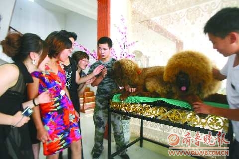9月1日,在沙子口百雀林的军港獒园,来自威海的10多名游客组团来买藏獒,獒园承担他们来青岛的所有费用。工作人员将藏獒轮流展出供买家挑选。据介绍,共有12只藏獒被买家相中,最便宜的一只也要5万元,最终成交总金额近200万元。