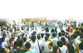 上午9点,2011烟台国际汽车工业展览会盛装启幕,近两千名市民早早排好队在检票口等待入场。开馆后,持票的市民井然有序的奔向各个展馆一饱眼福。记者在现场看到,许多市民一家三口全部出动观展,家里的小宝宝也在靓车前过了一把“车模”瘾。