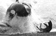 强有力的虎鲸以其他鱼类、海豹甚至是鲨鱼为食,它们能够将冰面上的海豹、飞行中的海鸟拖到海里。