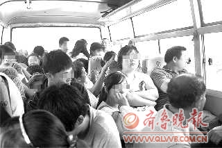 1日上午,交警五大队民警在工友路查处了一辆超载车。该车为109路城郊公交车,核载23人,实载43人,许多乘客只能挤坐在狭窄的过道里。民警将乘客卸载后,依法对超员客车进行了处罚。 本报记者 吕修全 通讯员 孙珊珊 摄