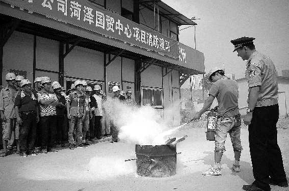 9月1日,菏泽市公安局开发区分局丹阳派出所的挂职副所长王伟、民警王亚鹏出现在国贸中心建筑工地上。为更方便地为农民兄弟服务,丹阳派出所在农民工兄弟生活区A3106建立警务室。现场向农民工兄弟讲述法律法规知识、自我保护的日常技能和防盗防骗常识,并指导农民工兄弟进行了消防演习。 本报记者 邓兴宇 摄影报道
