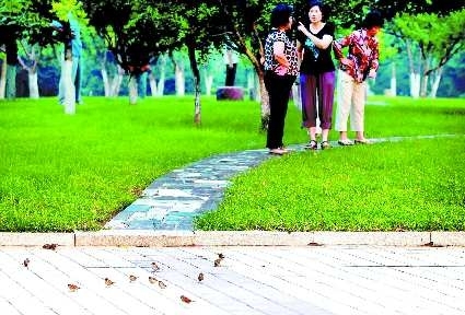 事件:一群麻雀完全不顾晨练中的市民,在地上叽叽喳喳地叫个不停。而身后的几位市民也在叽叽喳喳议论着什么,两者相映成趣。