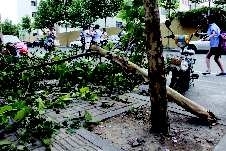 1日下午,在新华甲巷与东风街路口南侧,路边的一颗法桐被风吹倒在地。附近居民介绍,由于树木遭到虫蛀,早已经抵不住大风的吹动,树干从腰间折断,所幸没有砸伤过路行人。
