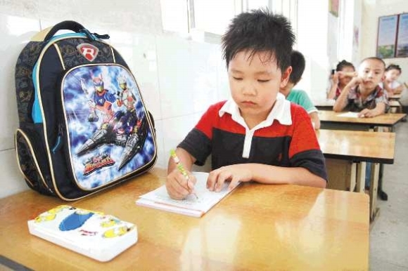 潘毅敏说,从报到一直到下午,俩孩子表现不错,很好学,掌握了部分汉语拼音,他们班主任要用三种“语言”和孩子交流,除汉语和英语外,还要加上手势。