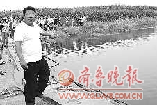 看桥人手指处为泵车落水处 记者 韩伟杰 摄