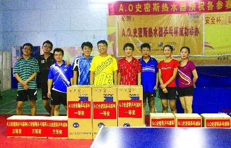 本届“A.O.史密斯热水器”杯乒乓球全民挑战赛是由齐鲁晚报系鲁南商报主办,A.O.史密斯热水器承办,各汽车4S店协办的一项全民乒乓球锦标赛,意在更好地推动全民健身运动的开展,展示群众素质和运动竞技水平。获得前三名的队伍可获丰厚奖品,其中,冠军球队每人可获价值1280元的A.O.史密斯热水器一台,亚军球队每人可获价值728元的A.O.史密斯热水器一台,季军球队每人可获价值528元的A.O.史密斯热水器一台。