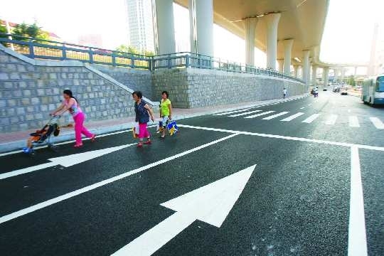 4日,在已经通车的快速路三期桥下,新修的道路已经划上线,但还没有正式通车。据介绍,快速路三期桥下的辅路还没有完工,预计本月内将正式通车。通车后,胶州路的车流量将得到分流。