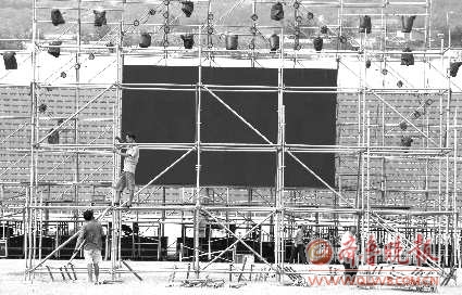 4日上午,记者在泰安市体育中心看到,几名工作人员正在用娴熟的高空作业技术搭建舞台。记者了解到,本次音乐节邀请了日本顶级的MSI音响团队。日前,该音响团队已经抵达泰安,开始紧锣密鼓地进行音乐节的现场音响设置。MSI公司的中野阳表示,本次音乐节由日本专业的音响师针对场地设计系统方案,由顶级音响师进行现场音响的安装。“可以说,音响设备完全是根据场地量身打造的。”中野阳说。