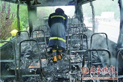 定陶县消防中队中队长张丹阳介绍,他们赶到现场时,中巴车已被烧得面目全非,并随时有爆炸危险。司机孔师傅表示,这辆中巴车才买了9个月,他怀疑是发动机的保险丝被烧,导致汽车自燃。 本报记者 周千清 通讯员 马雪娇 摄影报道