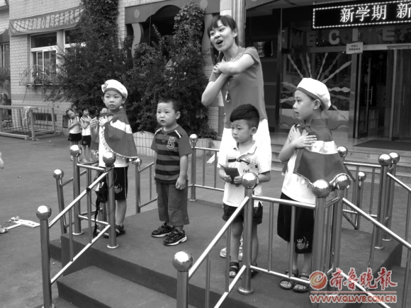 近日,山东银座·英才幼教集团17所分园纷纷举行了开学典礼。老师和孩子们在凉爽的秋风中,以饱满的热情和响亮的口号共同迎接新学期的到来。国歌响起,国旗飘扬,孩子们行注目礼。瞧,两位新入园的小宝贝尽管眼泪汪汪,却光荣地完成了护旗手的任务。