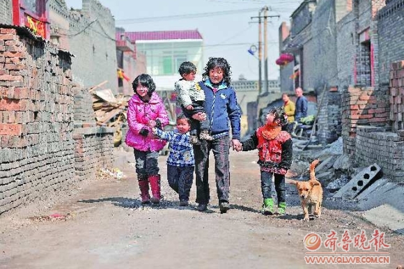 山西省孝义市瑶圃村村民李艳萍是位地地道道的农民,收入微薄,中年丧夫。但22年间她先后成为80多个孤残儿童的妈妈,上演着一幕现实版的《一个都不能少》,李艳萍因此被网友称为“史上最具爱心妈妈”。图为李艳萍在接孩子们放学。 新华社发