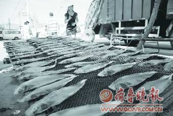 5日,在沙子口渔码头附近,成排成排的舌头鱼“躺”在铁丝网上享受日光浴。秋季是晒鱼的最佳季节,开海初期,鱼肥肉美,不少居民就会晾晒一些干鱼自用。商户则抓住时机,大批量进行晾晒,保量又保值。