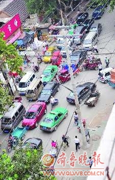 经过了交警的疏导,不到12点,拥堵的交通恢复了顺畅。
