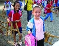 上午九点,在坊城街办武建小学中,小学生们迎来了新学期正式上课的第一天,在石子铺设的操场上,凯德商务与相约银饰以及鸢都义工一起举办了“2011我的第一个书包活动”。12名鸢都义工为小学生们发放了新书包共100余个,每个书包中发放了包括练习本、铅笔盒、字典在内的十余件学习用品,为教学办公捐献了两台电脑。并为家庭极其困难的10名学生发放了每人300元的助学金,帮助学生能在新的学期有一个新的开始。