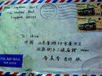 1988年,宗文博上小学二年级,虽然已经不在李美香班里,但每天都会去找李美香聊天,“他那时已经很懂事,虽然不太爱说话,但跟我却很聊得来。”直到1999年,20岁的宗文博要出国留学了,在走之前,还经常去看望李美香。“他去新加坡的第一年,给我写了一封信,整整三张纸,12年了,我没事就拿出来读,每次都流泪。和这孩子有缘,虽然送走了一批又一批的学生,但唯独他每年春节都来看我,在外地上学也按时给我写信。”
