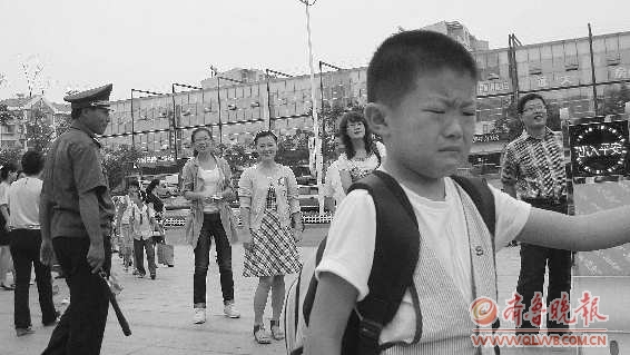 看到很多学生和家长在看,孩子的妈妈有些不好意思了,“这孩子,呵呵”。孩子的爸爸则站在一旁很无奈地看着娘俩,一句话也不说。