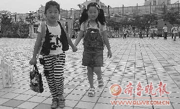 “两位小朋友,你们是几班的啊?”看到她俩不知所措的样子,记者问到。“我们是一年级四班的。”两小女孩回答。