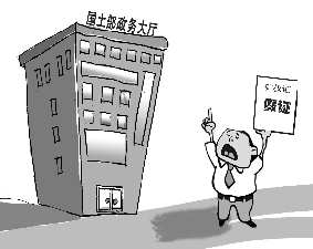 漫画:夏坤 河北企业家张连军和杨卫国花费500万元办理矿权证,从国土部政务大厅工作人员那里接过装有探矿权证的档案袋后,便开始规划铁矿的开采。但后来得知,矿权证是假的。国土部工作人员表示,当时仅是帮忙转交档案袋,整件事与国土部无关。(《中国青年报》)