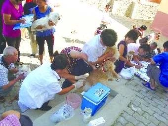 9月是“狂犬病”的高发季节。为有效预防“狂犬病”的发生,5日上午9时,竹岛办事处海天社区邀请环翠区畜牧局工作人员为辖区内猫、狗免费注射疫苗。共有29名居民带着自家的猫、狗接受疫苗注射。本报记者 王帅 摄