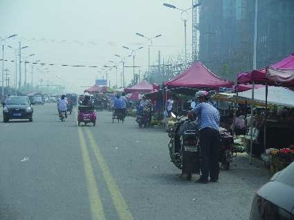 本报9月5日讯(记者 侯晓) 由于原来的农贸市场要进行改造,商贩将摊位搬到了马路上。附近正好有一所学校和一个小区,马路市场的存在带来了不小安全隐患。