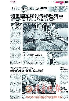 本报9月5日C03版《超重罐车强过浮桥坠河中》一稿见报后,引起市民广泛关注。6日上午,记者调查了解到,在济宁市任城区长沟镇境内,不到5公里的大运河河段上,就有三座大小不一的浮桥。浮桥为村民出行提供了方便,但也存在着很大的安全隐患。不少市民质疑,运河沿线为啥不能多建几座道路桥?建成后的浮桥公家管理好,还是私人经营好?