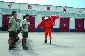 图为在比赛中获得400米疏散物资救人科目全国季军的孙志文,为队友示范背起120斤重假人的技巧。  通讯员 葛秀义 潘元 宋杭之 摄