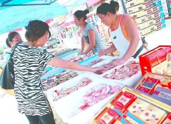 6日,记者在辽河路一超市门前看到,散装月饼成了许多市民青睐的对象。不少市民会选择把选购好的散装月饼进行现场包装,其成本约是商场内的一半。据老板介绍,今年相比商场内包装精美的礼盒月饼,现场包装的散装月饼尤为好卖,甚至许多单位都会选择订购这样的月饼作为中秋的福利。 本报记者 郑美芹 摄影报道