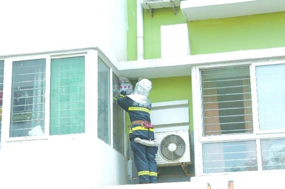 9月3日下午10时53分,东营市公安消防支队第八中队接到指挥中心命令,安盛南区14号楼一住户室阳台处有马蜂窝,影响了居民的正常生活。接到调度命令,八中队消防官兵赶赴现场发现,马蜂窝直径约20公分,不少马蜂飞出飞进。在对现场进行观察了解后,一名战士穿好防蜂服,先用杀虫剂进行喷杀,然后用一密封性好的袋子套住马蜂窝,迅速将其安全取下。在摘取任务完成后,官兵还认真对现场进行了清理。 本报通讯员 藤伟 本报记者 李金金 摄影报道