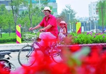 9月6日,一位老人带着孩子在德州新湖风景区游玩。为了迎接即将来到的中秋节,新湖风景区用两万余盆鲜花装点景区,营造温馨的节日气氛。 本报记者 苏超 摄