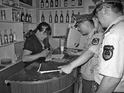 检查人员现场登记消防安全不合格的KTV。  本报记者 徐乐静 摄