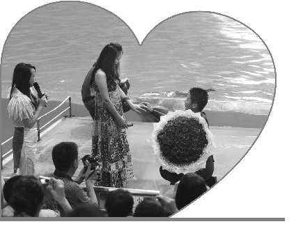 6日,在青岛海昌极地海洋世界表演场馆,一名小伙装扮成驯养员骑着海豚来到女友面前,在全场观众的注视下向女友求婚成功。据介绍,为了完成这次求婚仪式,这名小伙瞒着女友已经在场馆内训练了两天,与海豚一起完成了这次求婚仪式。