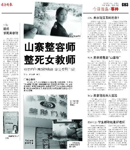 去年6月26日,在一家名为“欧亚美容”的整形门诊,40岁的超银中学英语老师孙女士在一台由山寨整容师刘某主刀的抽脂手术中惨死(本报2010年7月5日C03版曾报道)。时隔一年,近日法院作出宣判,不具备医师资格、非法行医的刘某被判处有期徒刑十年六个月。