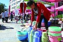 6日,在山东大学威海校区内,不少老生当起了小老板,在迎新接待区后面摆起了各种小商品,大约有一百多个摊位。据了解,只有符合贫困生条件的老生才可以摆摊。