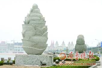 2008年6月,烟台市滨海中路落成11座雕塑,其中有10座为有孔虫雕塑。这些雕塑由青岛科技大学老师刘俊谦设计,莱州某公司制作,最终由烟台市环境艺术办公室斥资144万元购买使用。
