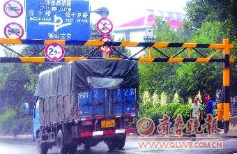 9月7日,济南二环东路上,一辆不熟悉情况的外地车辆在上燕山立交桥的时候被卡住,进退两难。 本报记者 左庆 摄