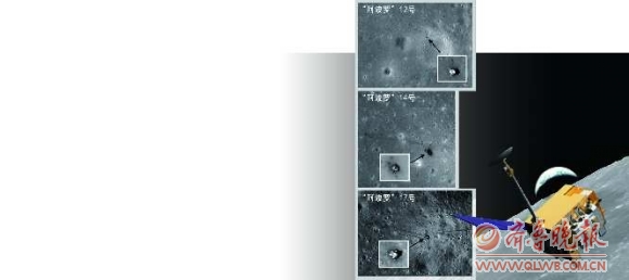 月球勘测轨道飞行器2009年6月18日升空。它曾长期在距月球表面约50公里的绕月极地轨道运行,不过地面科学家在今年8月曾一度调整其轨道,新轨道距月表最近距离只有21公里。在新轨道上,月球勘测轨道飞行器利用广角相机对3个登月点进行了拍摄。